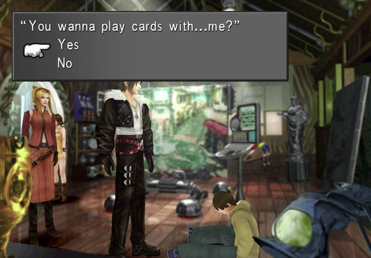 ถ้าเราทำเควสเสริมนี้ระหว่างการกลับมาที่ Dollet ครั้งแรก ลูกชายของ Queen of Cards น่าจะมี MiniMog card อยู่