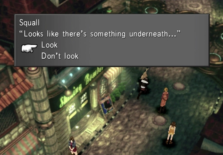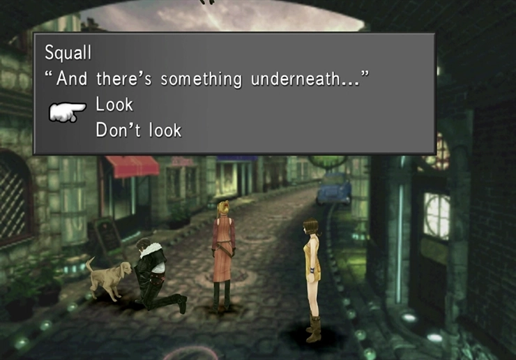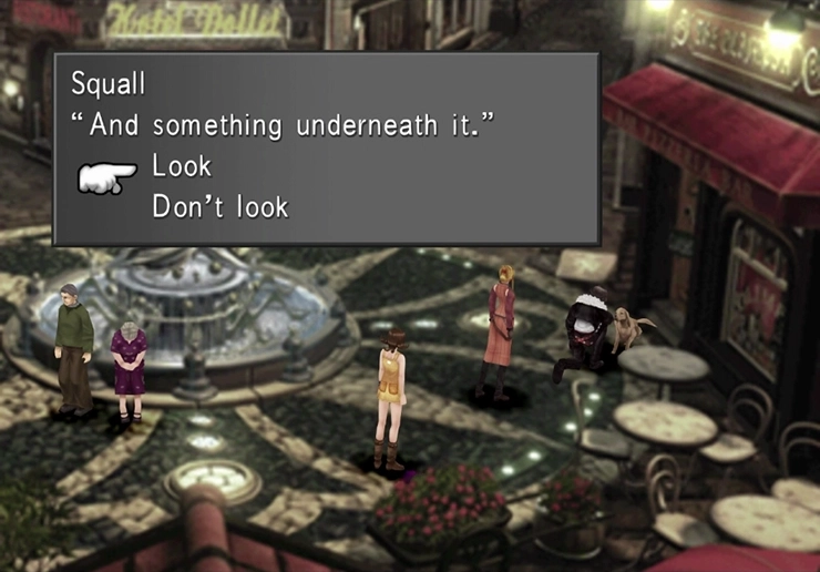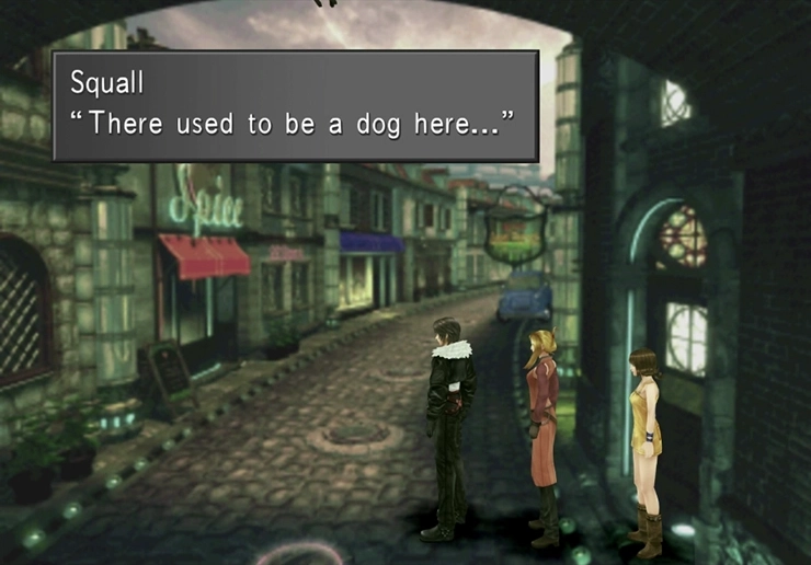 ตอนนี้ถึงเวลาทำเควสเสริมให้เสร็จแล้ว ออกจากบ้านของคุณปู่แล้วจะสังเกตเห็นว่าสุนัขที่อยู่ข้างนอกหายไปแล้ว (Squall จะพูดว่า “ตรงนี้เคยมีหมาอยู่นี่นา…”)