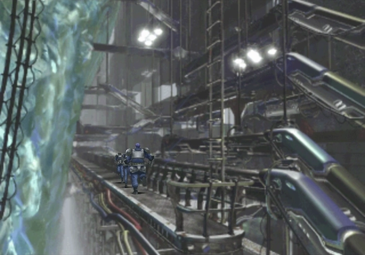 มุ่งหน้าไปยังหน้าจอถัดไป แล้วเราจะกลับมาที่ช่องทางเข้าสามช่องบนพื้น ให้ Laguna ไปยุ่งกับสลักบนช่องทางเข้าซ้ายสุด การทำตามขั้นตอนนี้ (และอีกขั้นตอนหนึ่งในภายหลัง) จะช่วยเปิดเผยไอเทม Phoenix Pinion ในภายหลังเมื่อเรากลับมาในฐานะ Squall ตอนนี้ ให้เดินทางกลับไปที่ช่องทางเข้าอีกครั้ง แต่เข้าหาจากทางด้านขวา (กลับขึ้นบันไดและลงบันไดอีกครั้ง)