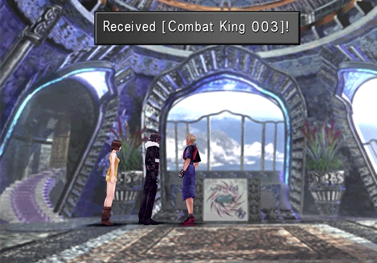 Combat King 003 เช่นเดียวกับนิตยสารอื่น ๆ ที่มีชื่อคล้ายกัน ใช้เพื่อสอนให้ Zell สามารถทำ Limit Break ท่าใหม่ ๆ ได้ ฉบับนี้โดยเฉพาะ ได้มาจากการดำเนินเรื่องราวเสริมที่ต่อเนื่องระหว่าง Zell กับที่เรียกว่า Pigtail Girl (สาวผมเปีย) ก่อนหน้านี้ในเกม เธอเคยให้รางวัลทีมของเราเป็น Remedy หรือ Mega Phoenix ขึ้นอยู่กับว่าเรามี Zell อยู่ในปาร์ตี้หรือไม่