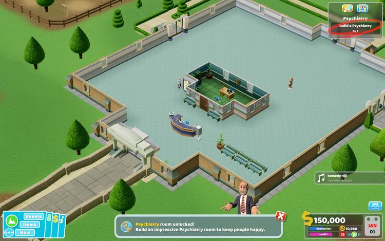 ใน Lower Bullocks เราจะเริ่มภารกิจด้วยการสร้างห้องจิตเวชเป็นอันดับแรก ซึ่งสำคัญอย่างยิ่งในการรักษาโรค Mock Star